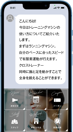 挨拶を通じてすぐに使えるクーポンや再来店につながる情報提供をすることができます。 -